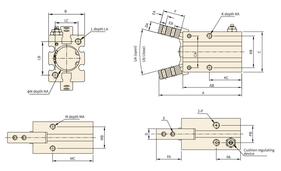 | 25 | 12 | 40 | 22 | M6×1.0 | 10 | 22 | 36.5 | 26+0.050 | 1.5 | M5×0.8 | 23.5 | 20 | 30° | 10° |