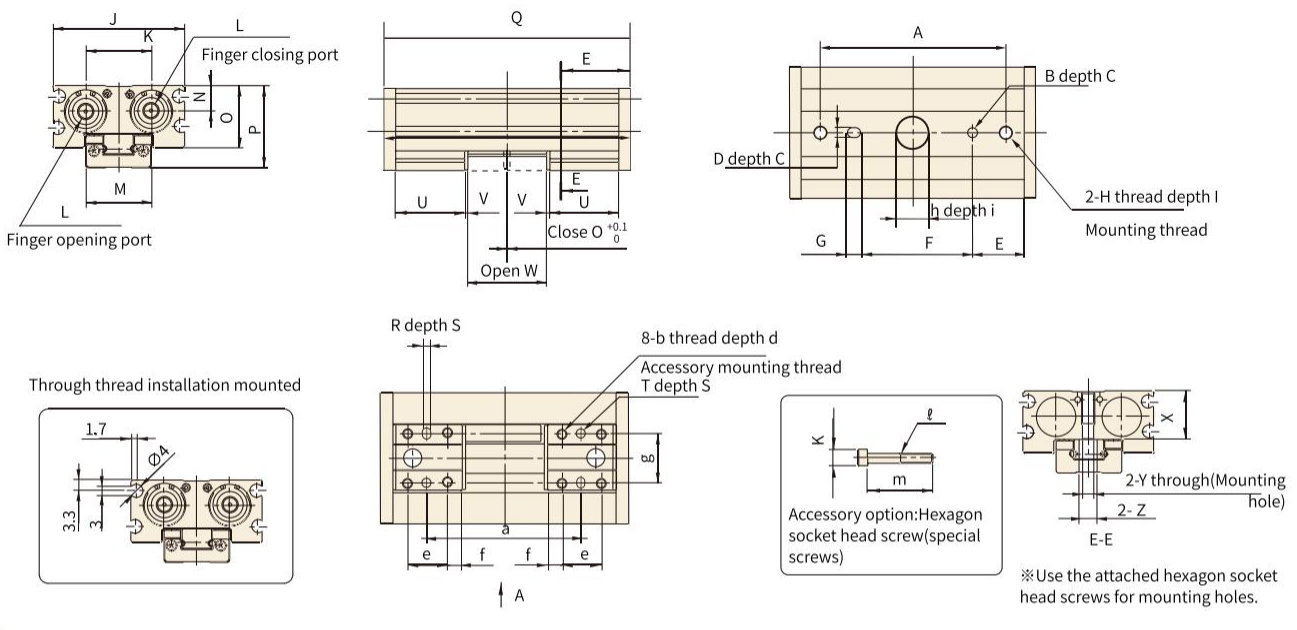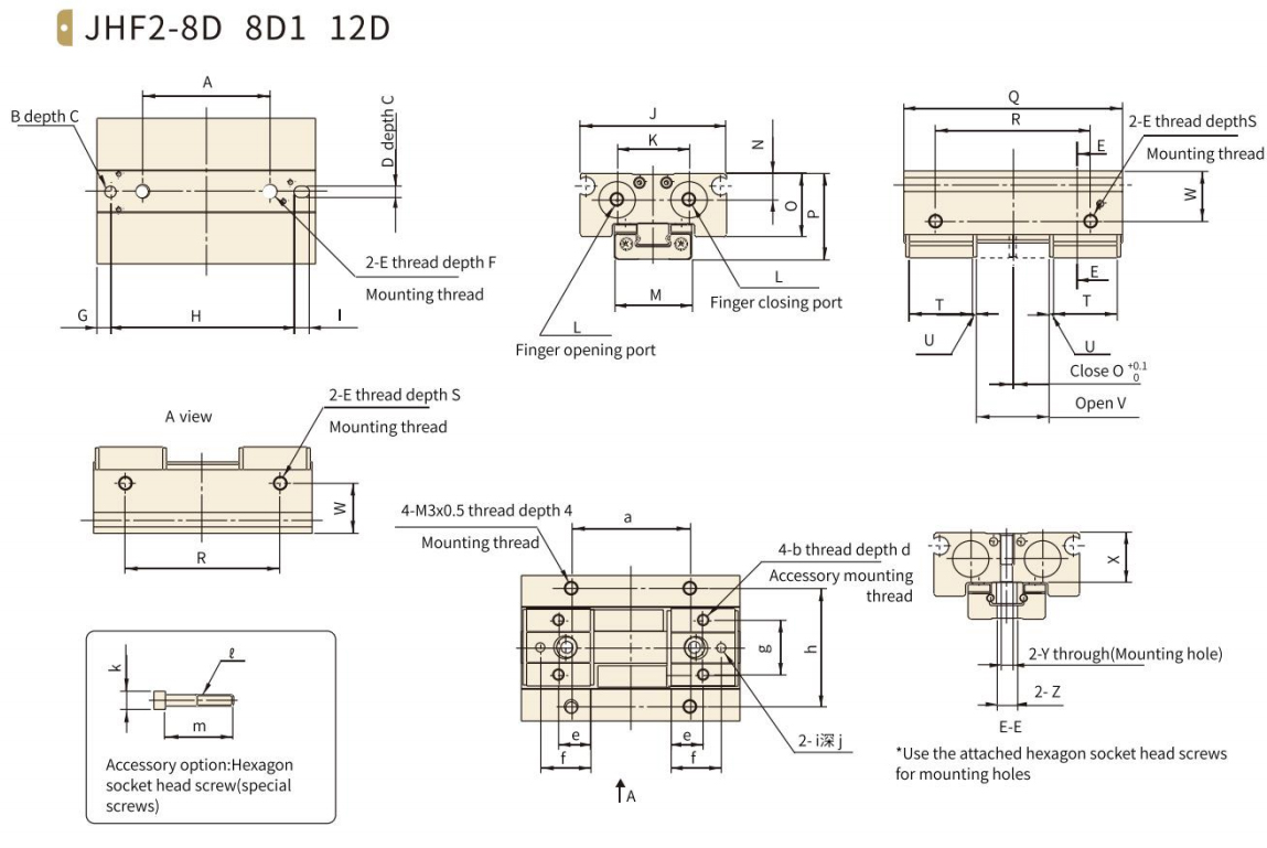| JHF2-12D | 26 | ∅3H9+0.025 0 | 3 | ∅3H9+0.030 0 | M4x0.7 | 10 | 4 | 42 | 4 | 40 | 20 | M5x0.8 | 208. | 7.7 | 19 | 25 | 52 | 38 | 5 |