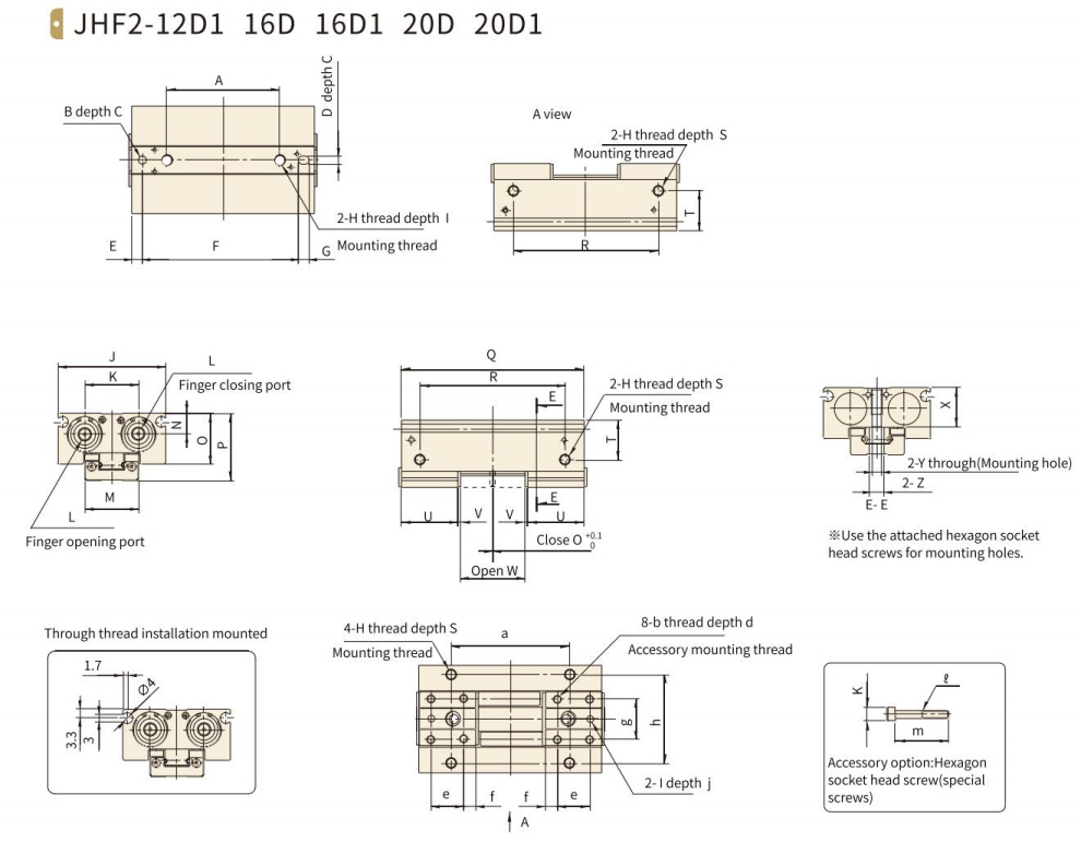 | JHF2-16D1 | 20 | 29 | 1.2 | 32±1 | 20 | ∅4.3 | ∅7.5 | 58 | M4×0.7 | 4 | 18 | 5.5 | 20 | 43 | ∅3H9+0.0250 | 3 | - | - | - |