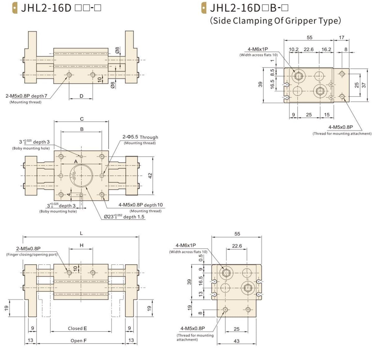 | JHL2-16D1□ - □ | 40 | 60 | 110 | 170 | 795 | |