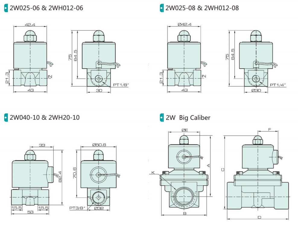 | 型式 | 2W025-06 | 2W025-08 | 2W040-10 | 2WH012-06 | 2WH012-08 | 2WH020-10 |