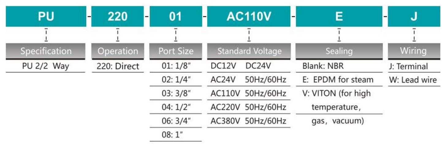 | 型式 | PU220-01 | PU220-02 | PU220-03 | PU220-04 | PU220-06 | PU220-08 |