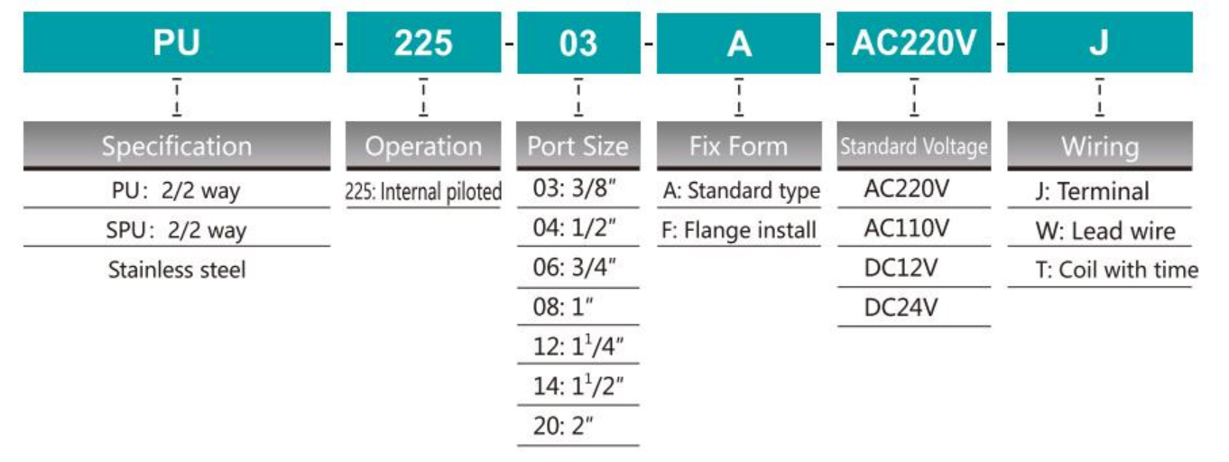 | 型式 | PU225-03a | PU225-04A | PU225-06A | PU225-08A | PU225-12A | PU225-14a | PU225-20A |