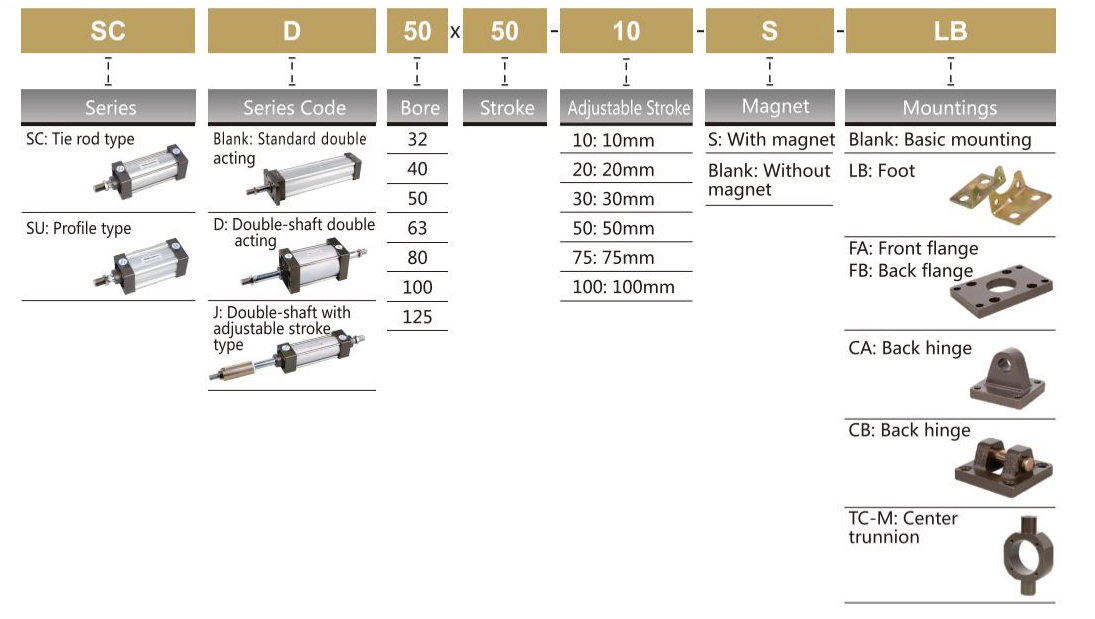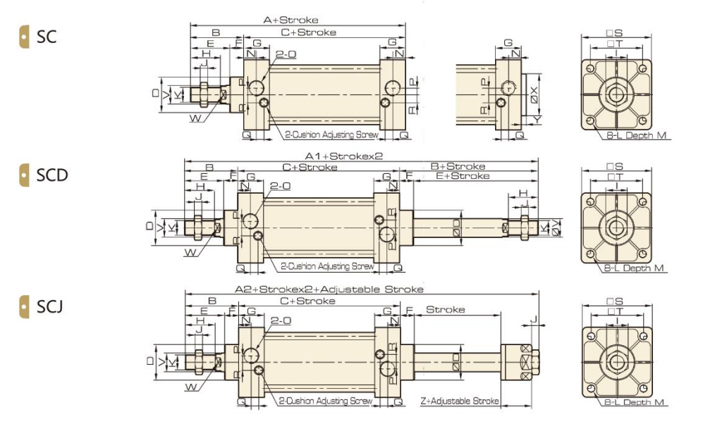 | 内径 | 標準ストローク | 最大ストローク | 許容ストローク |