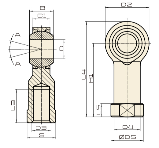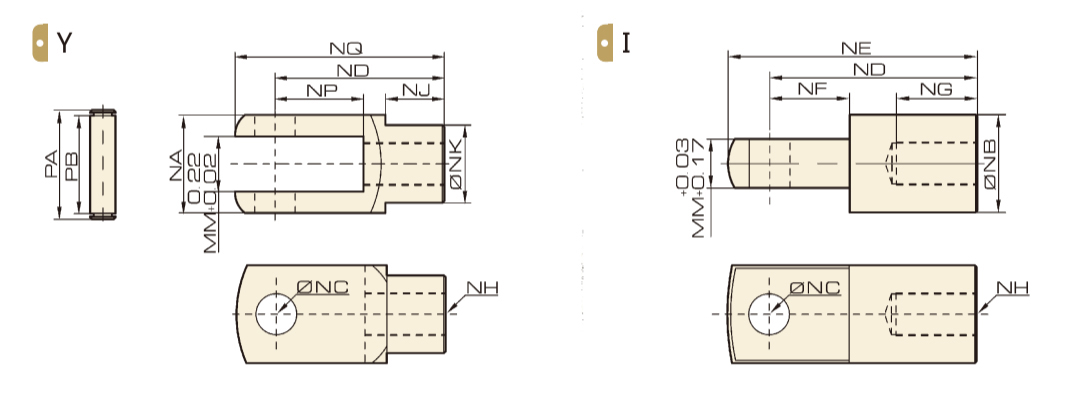 PHSA ユニバーサル ピストン ロッド 目外形寸法図