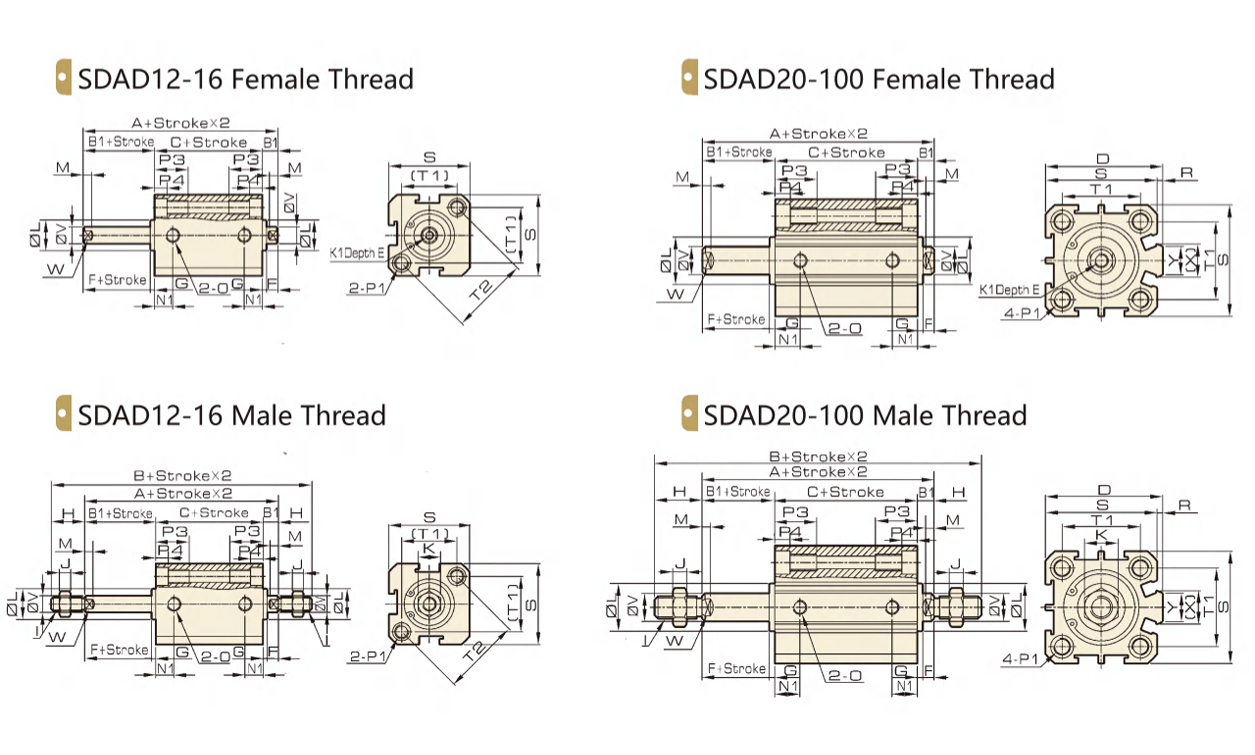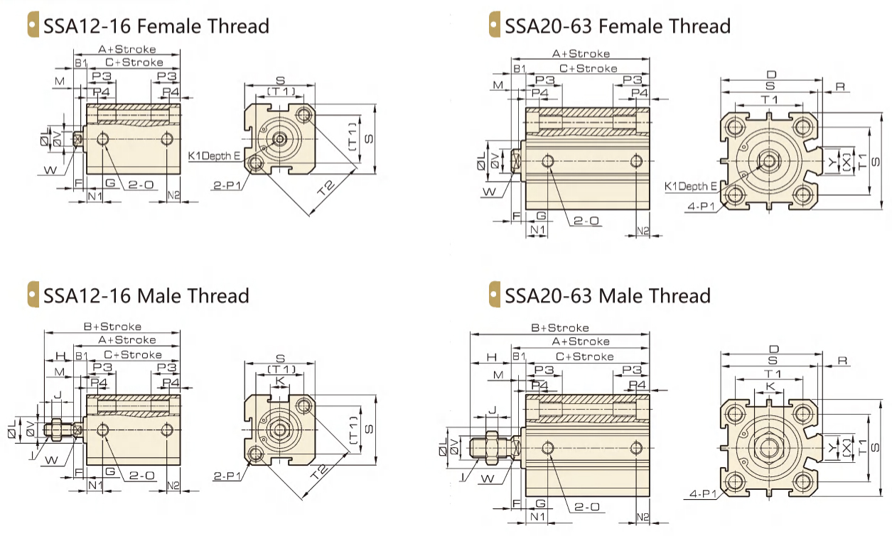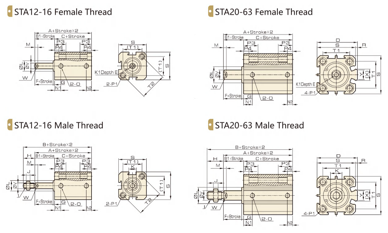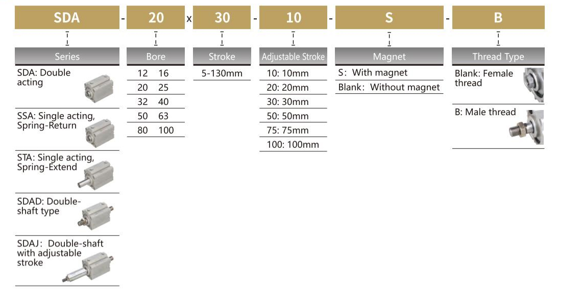 | SSA/STA | 12/16/20/25/32/40/50/63 | 単動 | 5 10 15 20 25 30 | 50 |